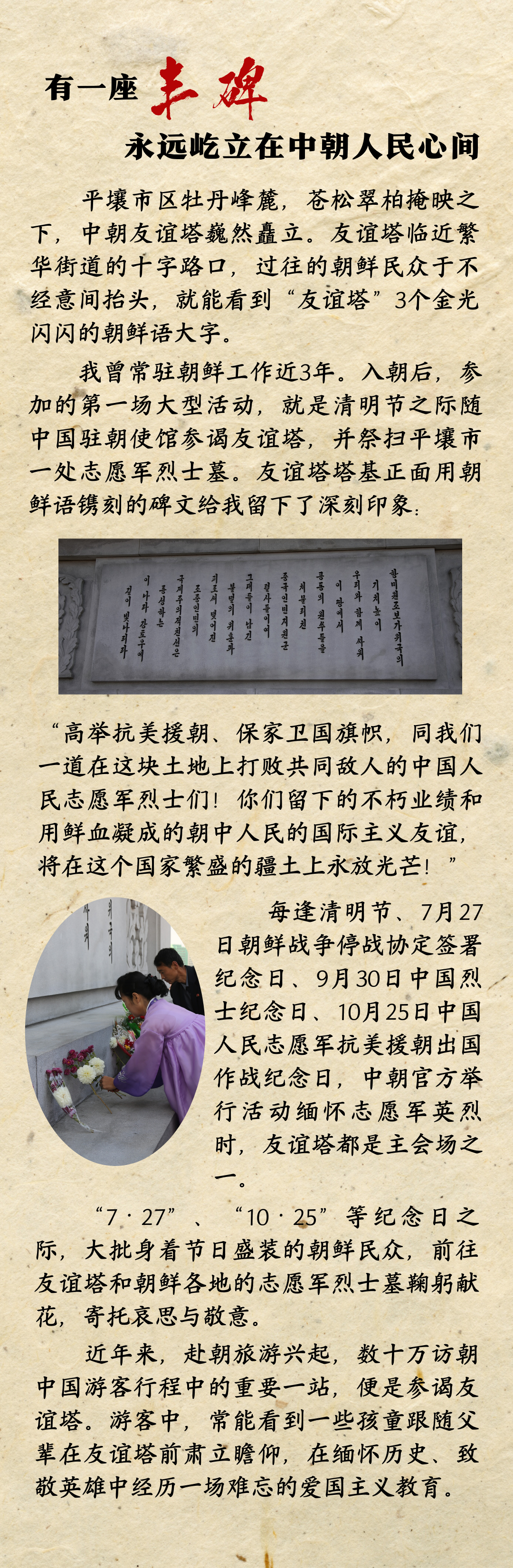 “我怀着无比崇敬的心情,参谒中朝友谊塔。”习近平总书记当时这样描述自己的心境。