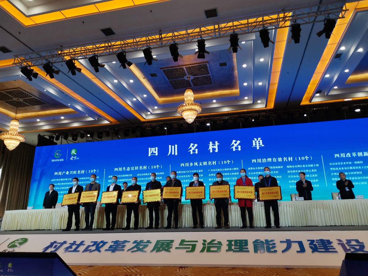 为树立我省乡村振兴的标杆和示范,今年上半年,论坛组委会牵头开展了2020四川名村、农村疫情防控先进村和杰出村官评选活动,经各地申报、市(州)初审、省论坛组委会复审、专家评审、资料查阅、网络投票、会议推荐等环节,共评选出成都崇州市观胜镇联义村等10个产业兴旺名村,绵阳市三台县新德镇崭山村等10个生态宜居名村,广元市苍溪县云峰镇狮岭村等10个乡风文明名村,泸州市合江县真龙镇瓦房村等10个治理有效名村,自贡市荣县来牟镇一洞桥村等10个改革创新名村,开幕式上为四川名村50强授牌,并为长宁县永江村颁发承办论坛贡献奖。