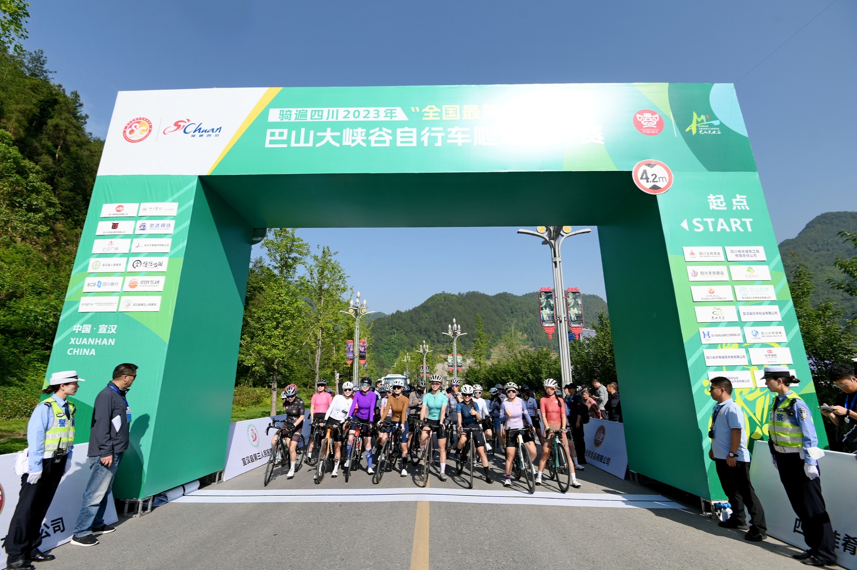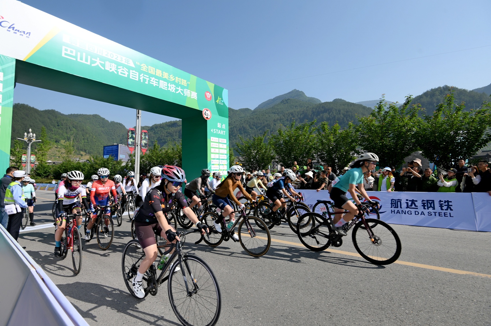 5月14日,“骑遍四川”2023年“中国最美乡村路”自行车爬坡大师赛在巴山大峡谷于开赛,236名来自各地的公路自行车爬坡高手们逐鹿山路十八弯。