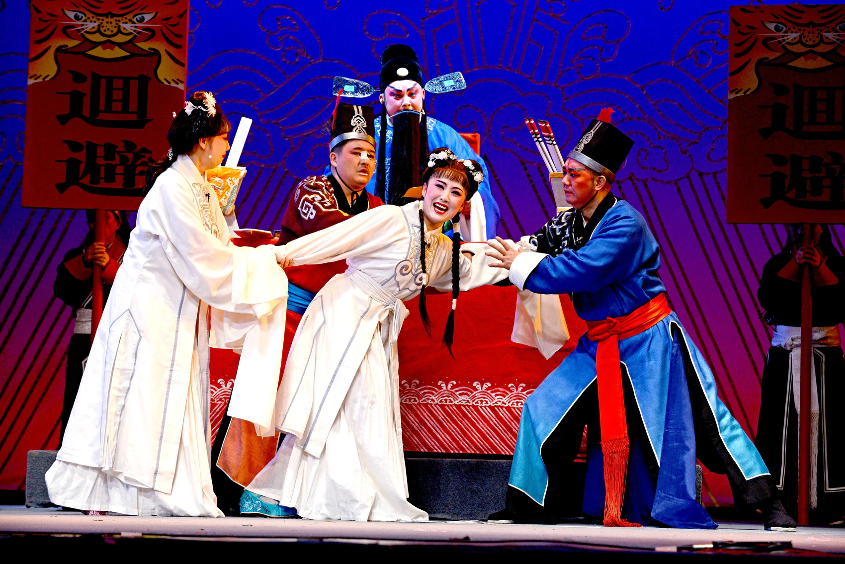“君如虎兮君威武,心系民兮国多福……” 新编历史故事剧《卧虎令》源出于《后汉书董宣传》,描写汉光武帝时期,洛阳县令董宣,不畏皇权,甘心以身殉法,带着坚定信念和凛然正气上殿面君的故事。剧中的主人公董宣不畏权贵、执法不阿的为官形象深深地印在观众心中,演出一直经久不衰。值得一提的是,这部剧今年还入选了文旅部的数字戏剧录制项目。