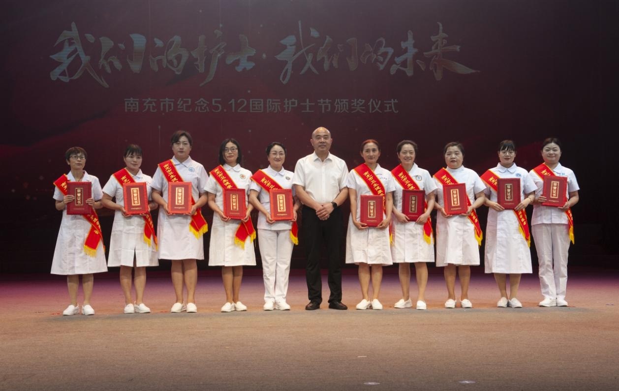 现场为南充市卫生健康系统13个护理工作先进集体,50名优秀护理管理者,100名优秀护士,50名抗疫(护理)先进个人进行了颁奖。