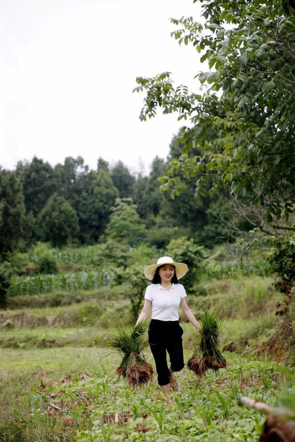 邓小燕常常边干农活边直播,向网友介绍农村、农产品。照片由受访者本人提供
