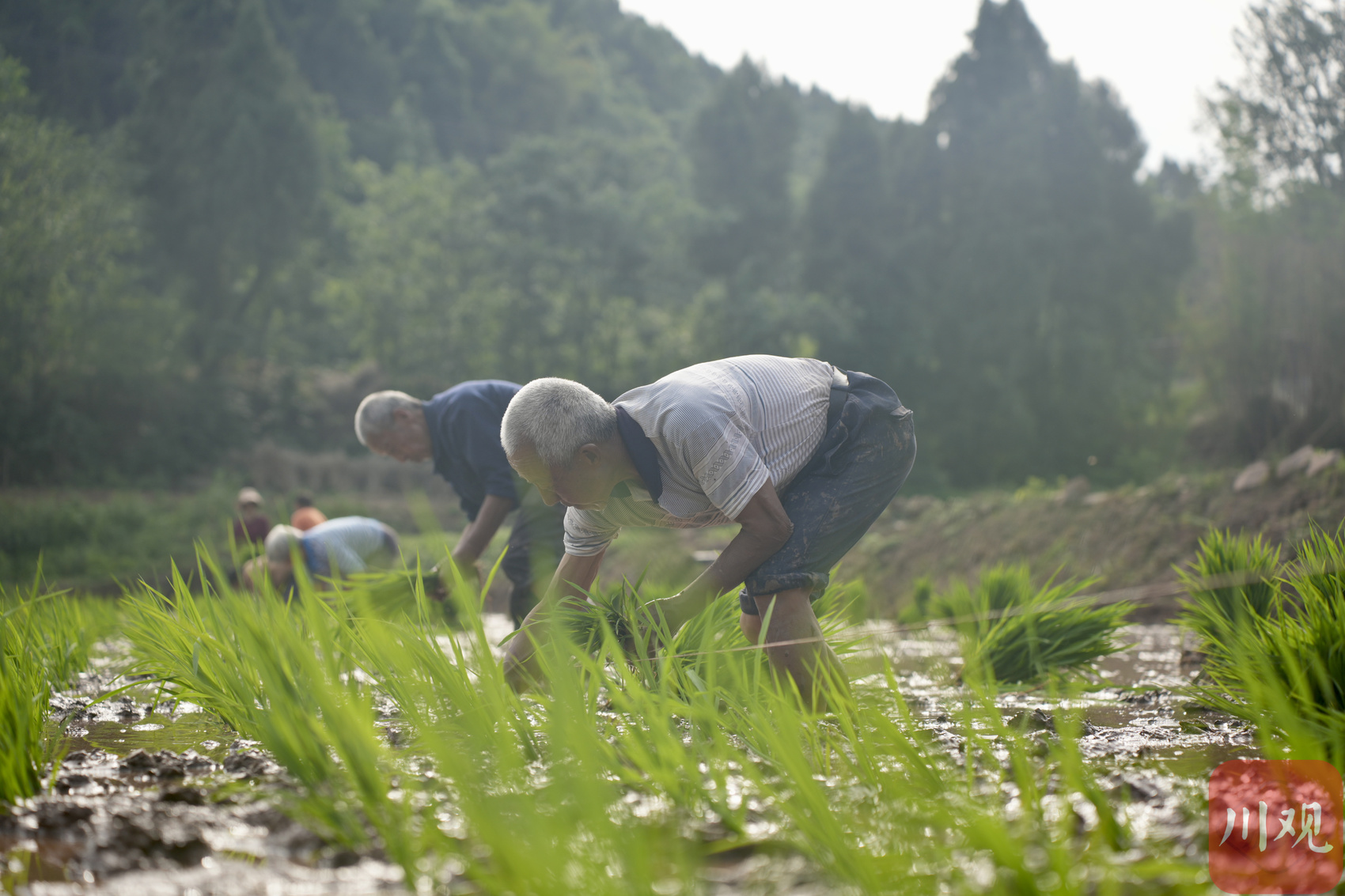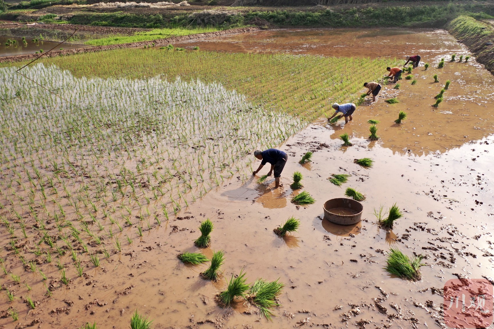 5月14日,来到遂宁市安居区白马镇,大片的稻田映入眼帘,三五成群的村民们卷起裤腿,分工合作,扯秧、挑秧、抛秧、插秧......广袤的田野上一派繁忙景象。
