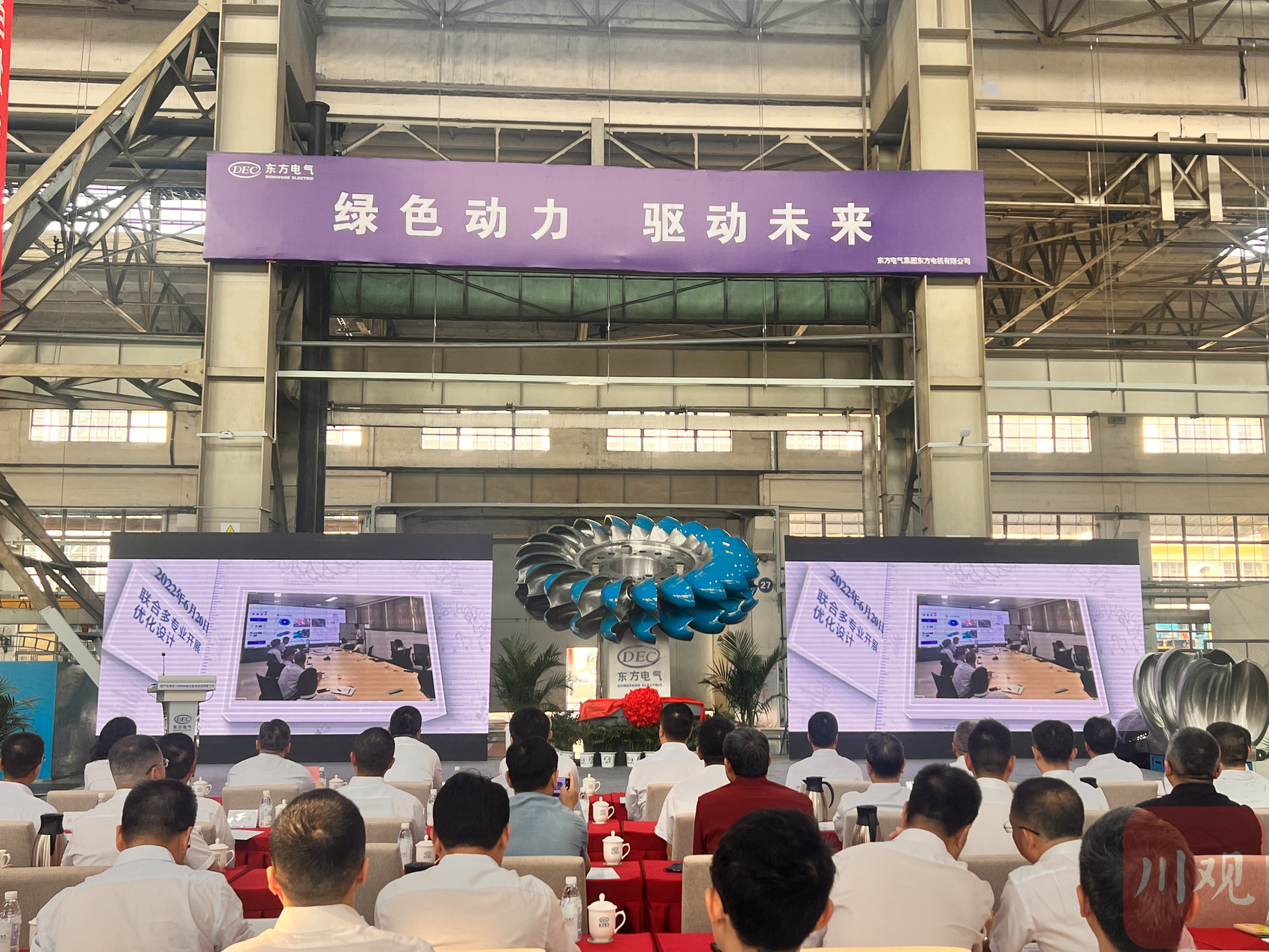 国内首台单机容量最大功率150兆瓦级大型冲击式转轮下线仪式现场