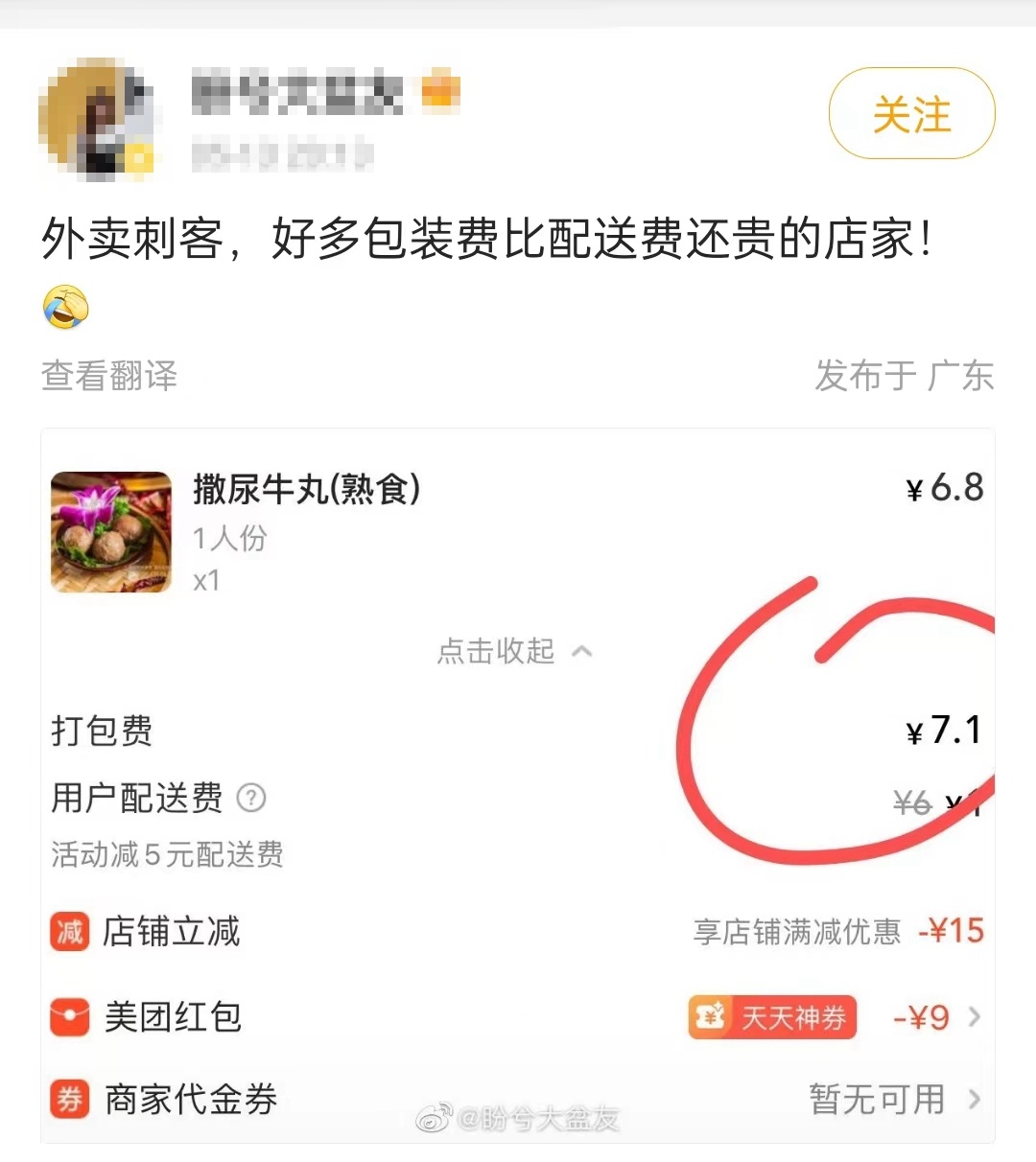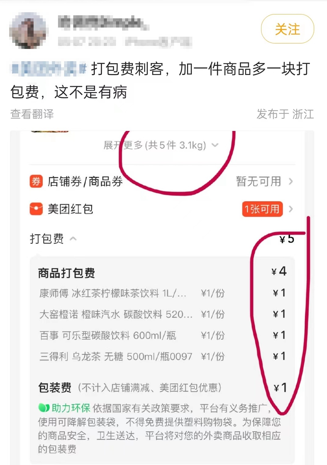 比缩水外卖还离谱的,也许是不断叠加的外卖包装费。包装费比配送费还贵不算什么↓