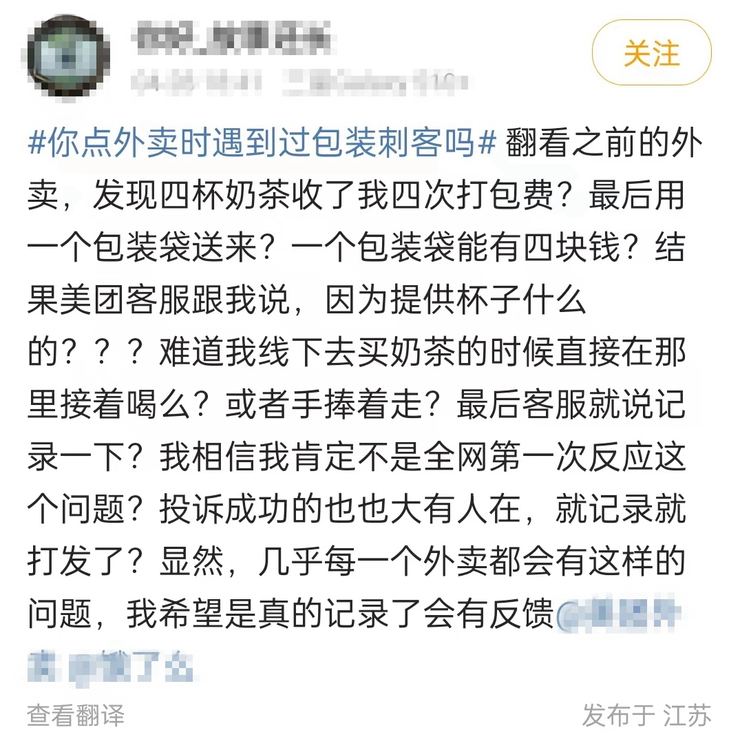 四杯奶茶收四次打包费,因为有四个杯子?这个解释,你信吗?