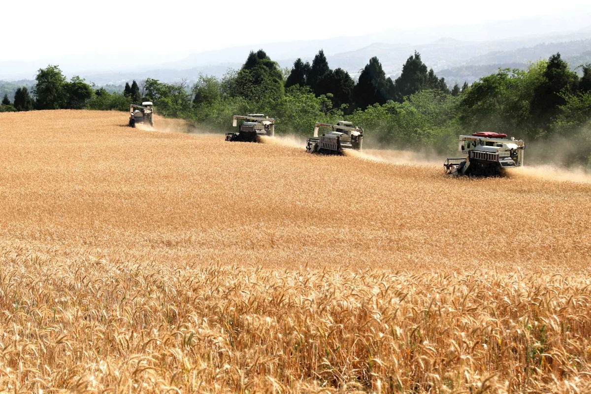 绵阳小麦机械化收割 图片由绵阳市农业农村局提供
