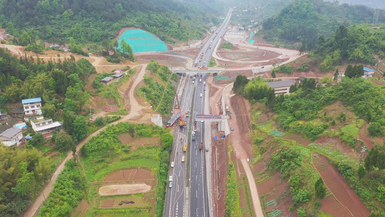 即将建成通车的达渝高速高竹互通及连接线工程。(邻水县融媒体中心供图)