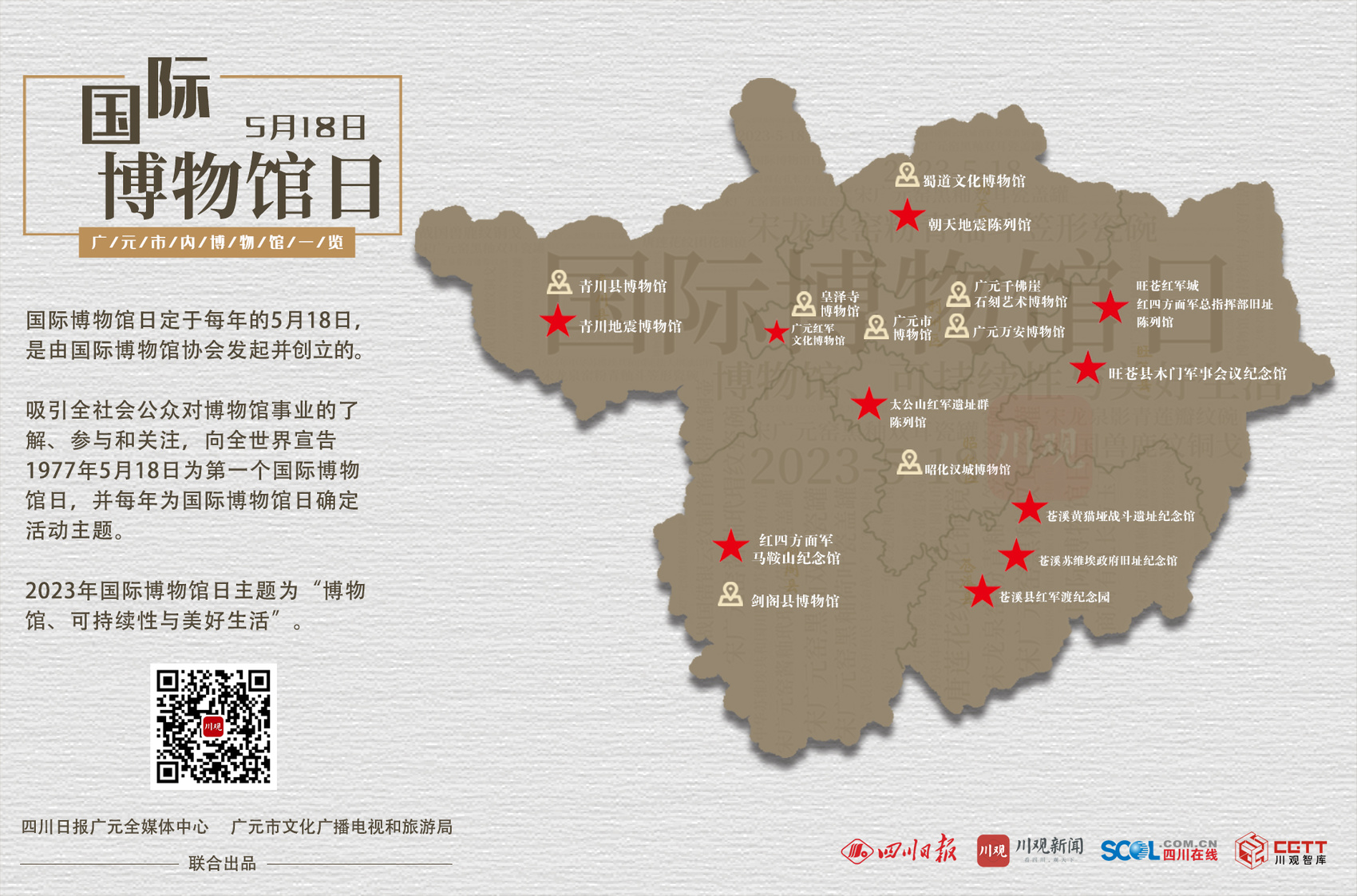 即日起,四川日报广元全媒体中心、广元市文化广播电视和旅游局联合推出“5·18国际博物馆日”系列专题宣传,带大家探索广元各博物馆,认识馆藏文物,了解广元历史文化。敬请垂注!