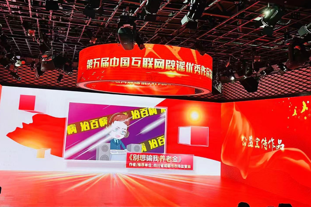 由四川省成都市市场监管局制作的《别想骗我养老金》获公益宣传版块视频类奖项。