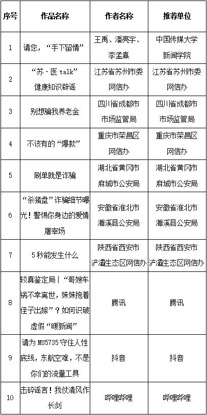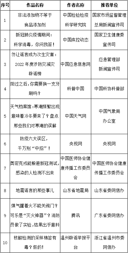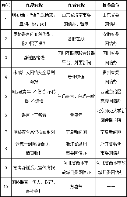附:第五届中国互联网辟谣优秀作品获奖名单