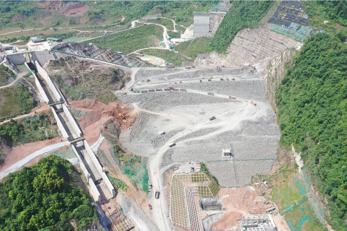 大坝、料场、运输道路三点之间,需要高水准的统筹。成都环境集团李家岩公司项目管理部部长徐成介绍,料场爆破出料,卡车将石料运到大坝,作业面开始填筑施工,“这三个环节的衔接需要流畅、高效。”