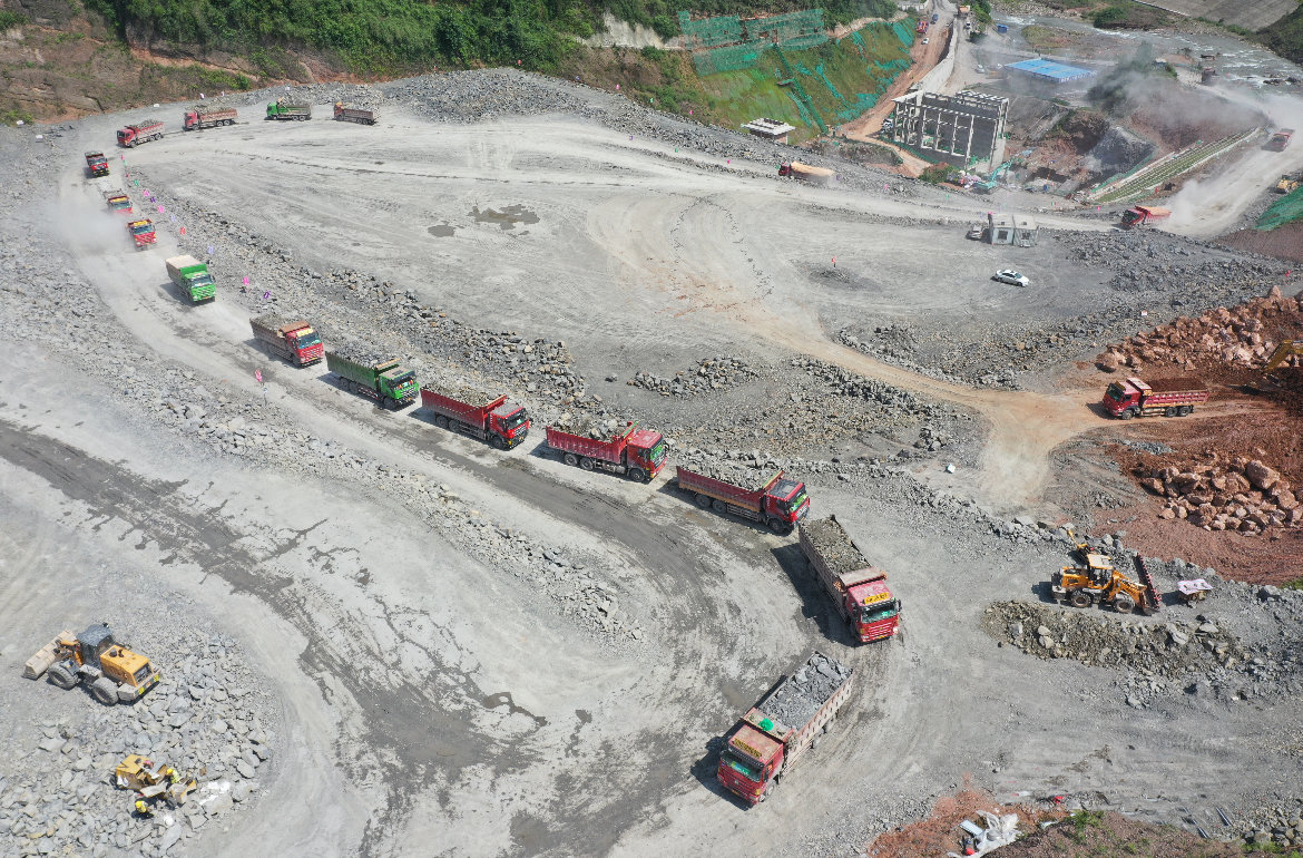 抢施工进度,盲目增加重卡或者机械设备用处不大,“车多了会造堵,作业面只有那么多。”张铎说,经过前期大数据的积累和摸索,他们寻找到“最优解”,一个作业面匹配20辆重卡运输,百余辆重卡组成“钢铁长龙”,昼夜接力,将石料源源不断运往大坝。