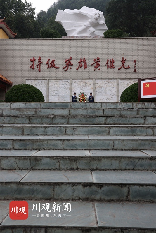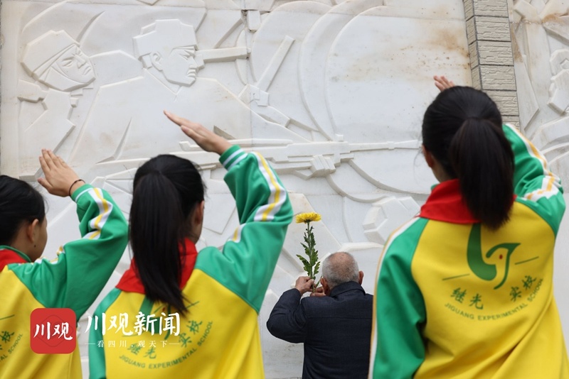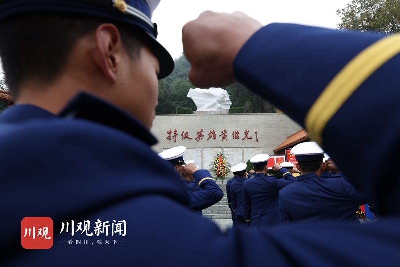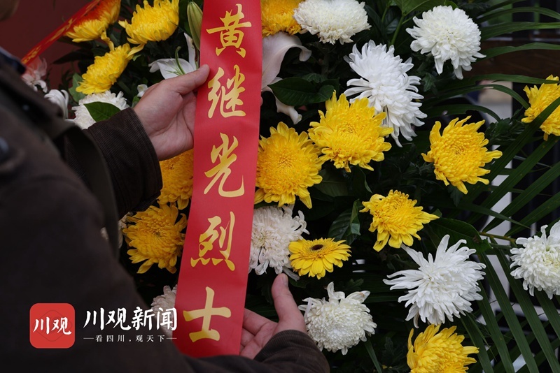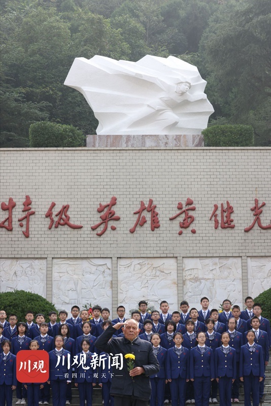 10月23日,在中国人民志愿军入朝作战70周年之际,黄继光烈士家乡中江县各界群众自发来到黄继光纪念馆,缅怀英雄、致敬先烈。黄继光战友,今年93岁的中国人民志愿军15军45师老战士李世廷深情献花。