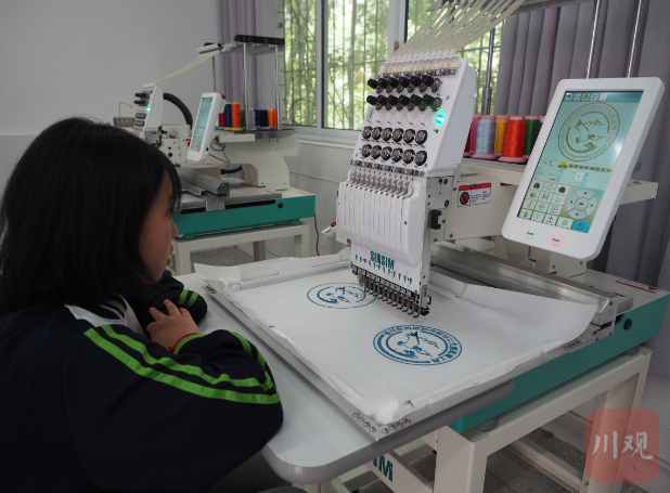 沐川职中学生正在学习操作绣花机