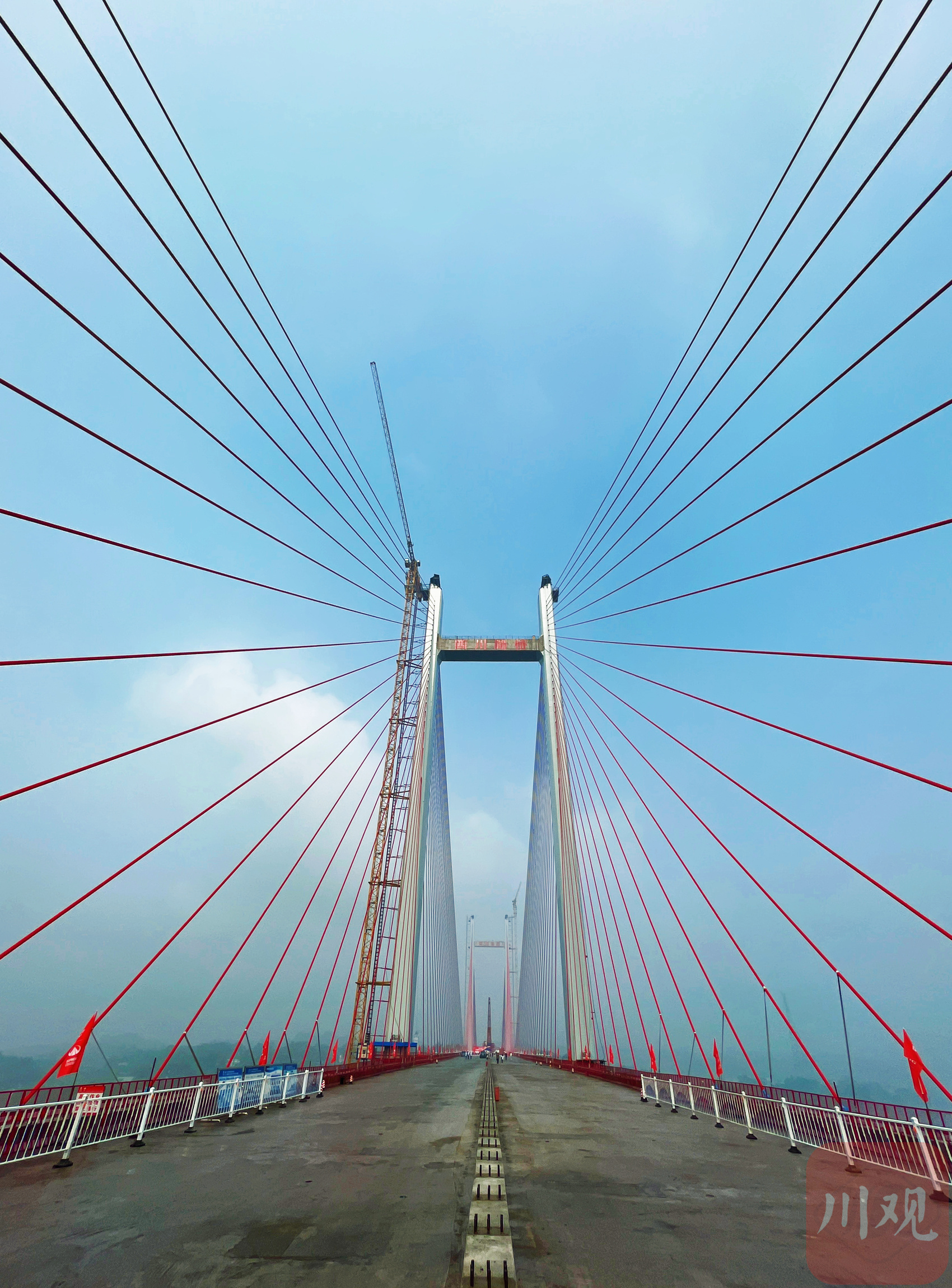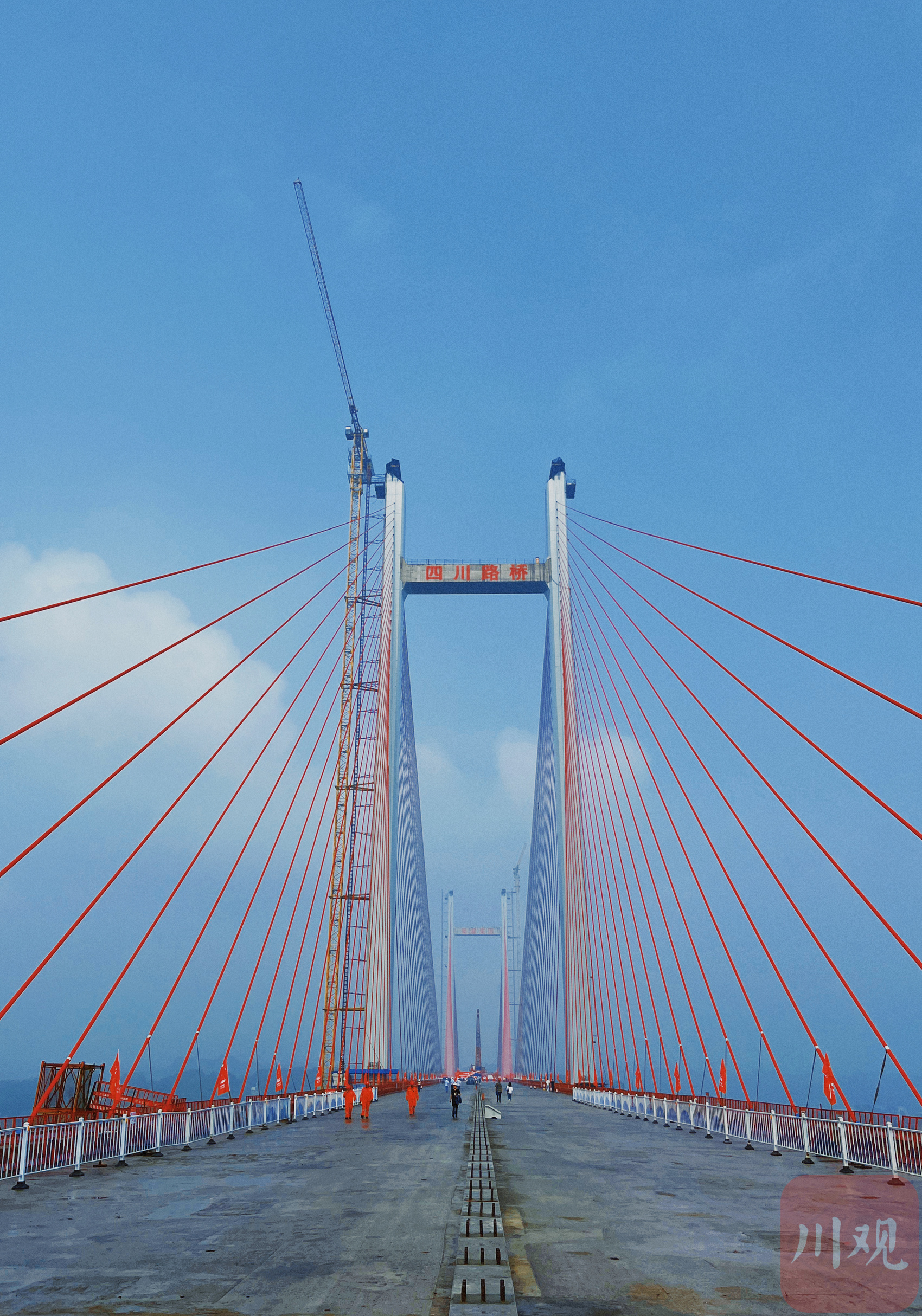 泸州市纳溪长江大桥起于纳溪区麒祥路与疏港路交汇处,止于长江北岸江阳区方山镇白塔村,全长1.545千米。“主桥为双塔双索面混合式结合梁斜拉桥,双向4车道,设计时速为60公里/小时。”泸州市交通建设工程服务中心纳溪长江大桥项目负责人何兴智介绍道:“大桥合龙后,下一步将开展桥面铺装及附属施工,全桥建设进入收尾工作,建成通车后两岸群众往来将由之前公交绕行2小时缩短至5分钟。”