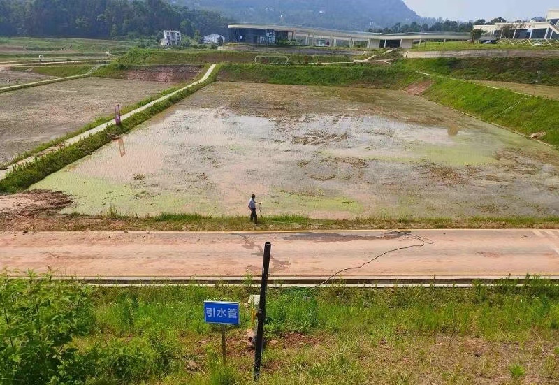 污水处理池旁就是成片的高标准农田,目前正值插秧时节。“看,这就是污水池净化处理过的水,可以直接用来灌溉。”村民饶家全打开水龙头,净化后的生活污水直接流进田里。