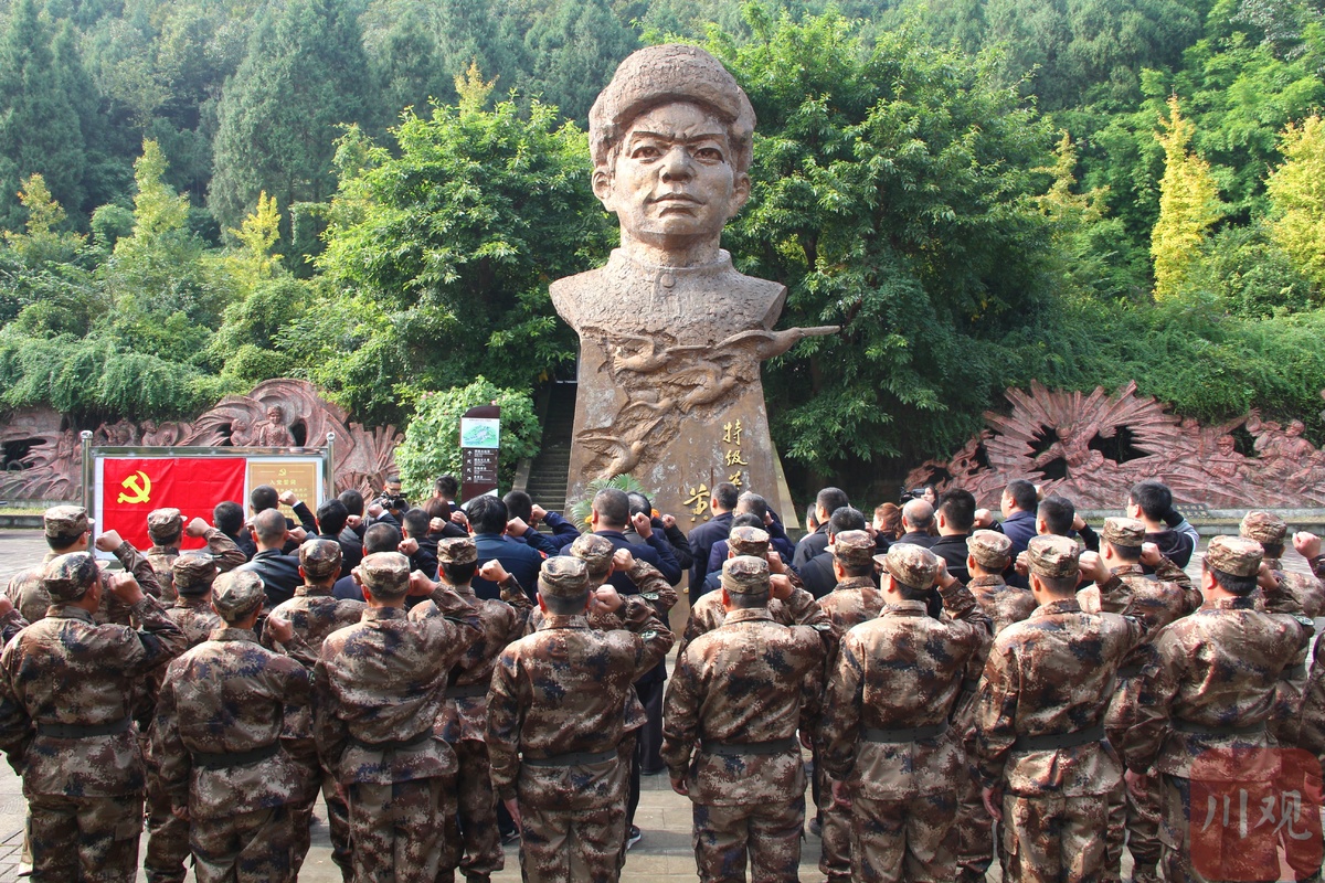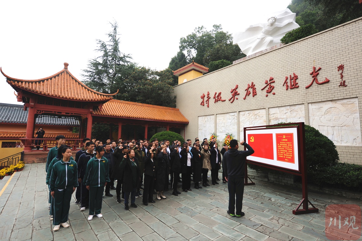 与此同时,在50公里外的黄继光故居,继光镇机关、村(社区)干部,第一书记、党员、群众、民兵等百余人在此集中收看纪念中国人民志愿军抗美援朝出国作战70周年大会。观看结束后,大家向英雄雕像敬献花篮,在党旗下庄严宣誓,随后参观黄继光故居,实地感悟英雄的成长印记。