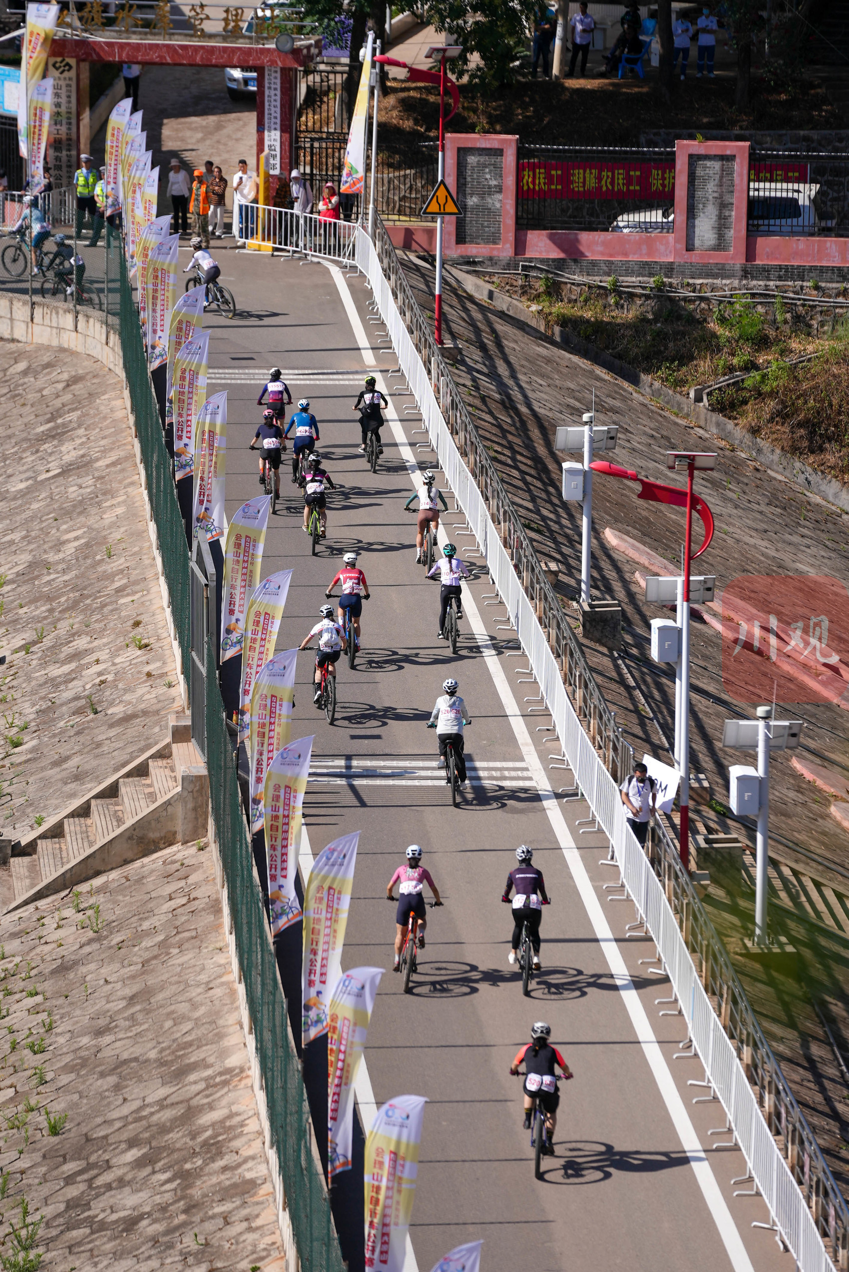 8时50分,凉山彝族自治州会理市仙人湖畔,一声清脆的发令枪响起,选手们用力蹬下脚踏板冲出起点线,如离弦之箭疾驰而出,一场“速度与激情”的自行车盛宴热情上演。