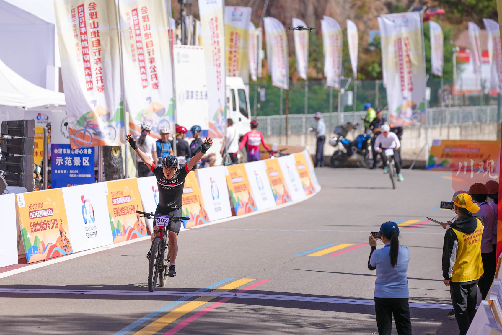选手冲过终点,“翘车头”来庆祝(黄潇 摄)
