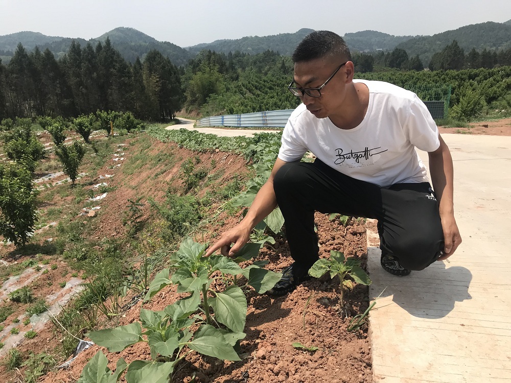 2021年,陈恒文又到三台县刘营镇马家村流转了800多亩撂荒地进行整治,规模种下了夏满蜜桃、秋月梨、青脆李、车厘子等水果。为了解决水果投产前3年没有收入的问题,陈恒文采用了粮经复合种植模式,在果园里套种了西瓜、土豆、南瓜等作物。