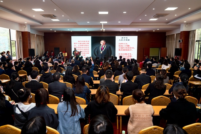 “我是作为广大医务人员代表接受了‘国家荣誉’勋章,这一荣誉属于全体医疗工作人员。”10月23日,国家荣誉称号获得者、中国工程院院士、天津中医药大学校长张伯礼做客成都中医药大学,带来了主题为《弘扬抗疫精神 坚定文化自信》的抗疫专题报告。张伯礼谈到中医药在此次抗疫中的贡献已经被写进了历史,他表示“我(的努力)不是给中医药争地位,是给中国人民争一条生路”。能够容纳200多人的会场座无虚席,1个多小时的报告,掌声不断。