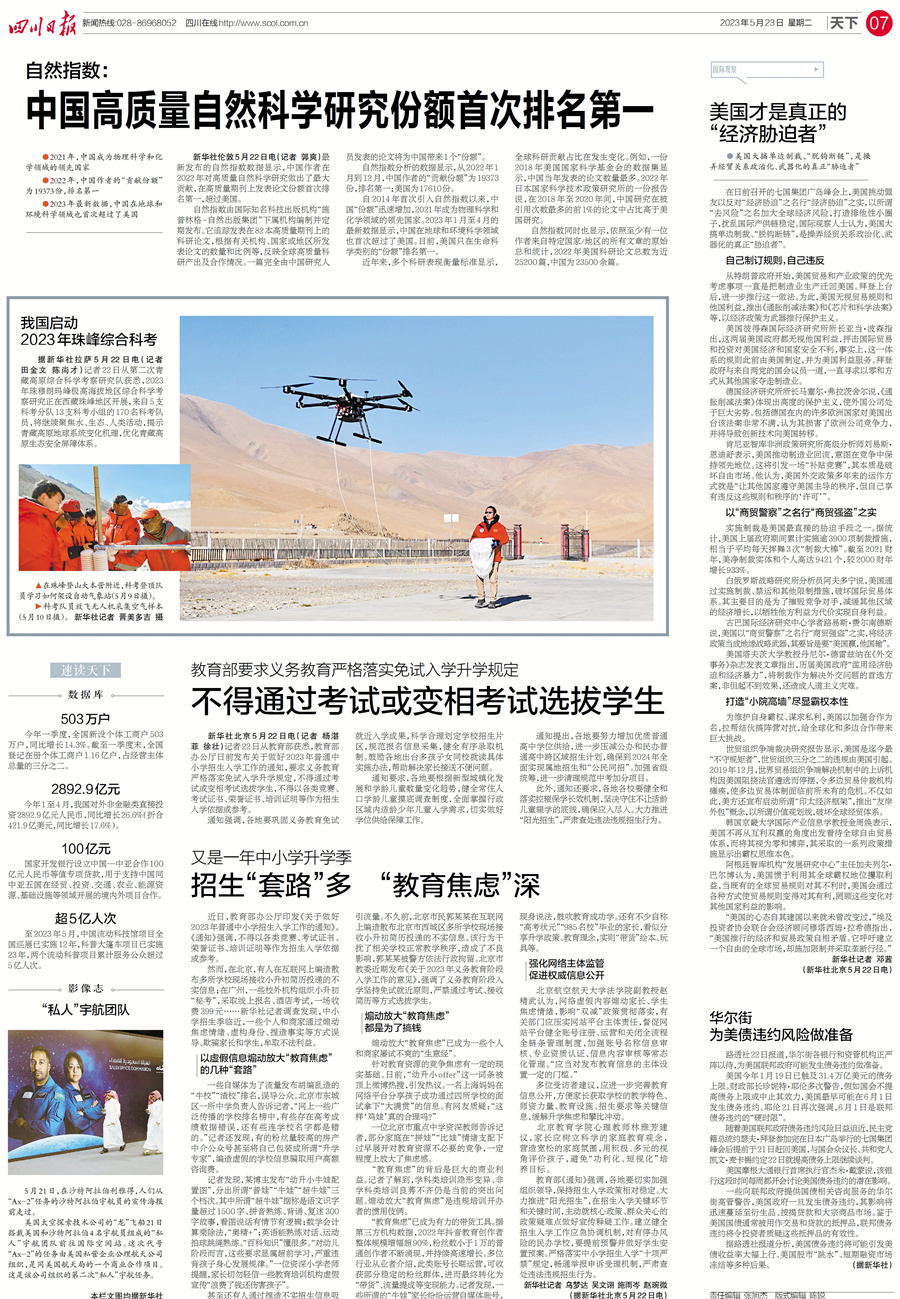 最新发布的自然指数数据显示,中国作者在2022年对高质量自然科学研究做出了最大贡献,在高质量期刊上发表论文份额首次排名第一。