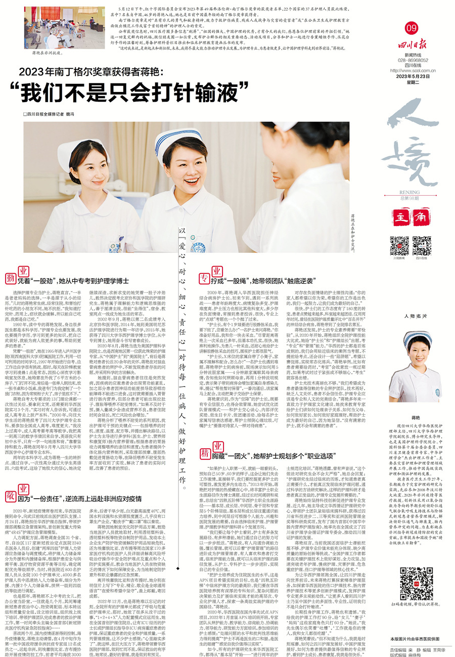 南丁格尔奖章获得者蒋艳推动四川护理走向世界