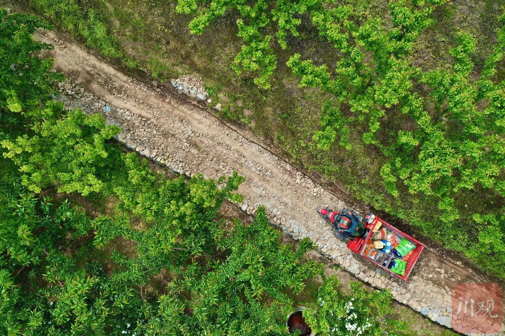 2021年6月,麦通村的产业道路破土动工,寂静的山窝窝沸腾起来,兴高采烈的乡亲们迎来该村第一条产业道路。如今,陈国花也结束了自己靠背篼运果子的苦日子。