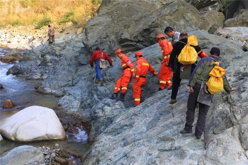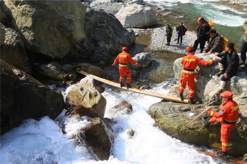 “我宣布,联合巡查行动正式开始!”20日早上,随着带队领导巡护号令的发出,工作人员踏上了二郎庙--头道河--伽担湾的巡护路线,这条巡护路线两边是峭壁、中间是奔腾的河流,很多时候都是临时搭建两根木头宽的“路”,贴壁而过。由于出发前几天下雨,河水上涨,原本踩着石头可以过河,现在只能踩着冰冷的河水过河。