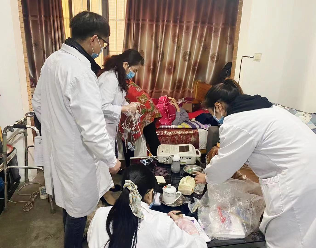2022年9月,中心家庭医生陶建华拨通了郑大爷电话准备询问他近期身体状况,但是电话却一直无人接听。意识到郑大爷可能身体有恙后,3名团队医生立即上门查看。开门后的郑大爷面色晦暗,手脚不停颤抖,经过询问得知,郑大爷已经一周多没有出门,并出现了恶心、呕吐、拉肚子的情况。凭借多年专业经验,陶建华意识到了情况危急,他一边在现场用便携式B超、心电图、指脉式血氧监测仪等设备为郑大爷检查,一边让同事通知救护车立马来接人送往中心治疗。