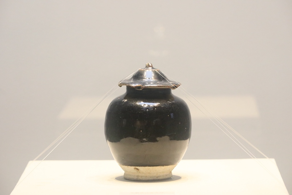 广元窑瓷器以黑色为代表,图为黑釉荷叶瓷盖罐
