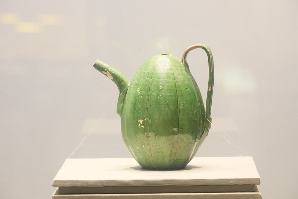 绿色广元窑瓷器,图为绿釉瓜棱纹执壶