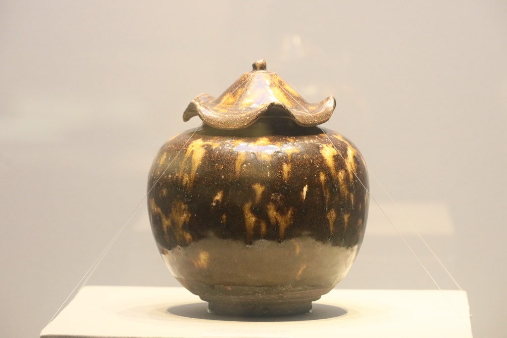 “镇馆之宝”广元窑酱釉玳瑁纹荷叶盖罐