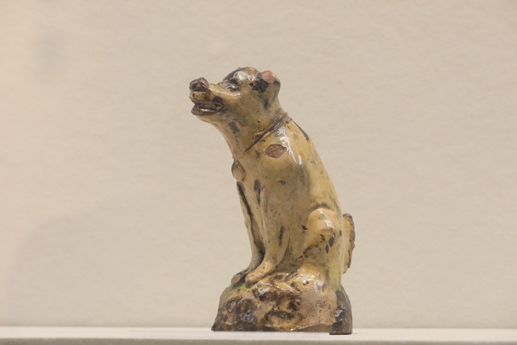 在这一单元,最让人眼前一亮的是有着“镇馆之宝”美誉的广元窑酱釉玳瑁纹荷叶盖罐。这件制作于宋代的瓷器,是国家一级文物。瓷器不仅施有酱釉,还饰有广元窑特色之一的珊瑚状黄色玳瑁纹。