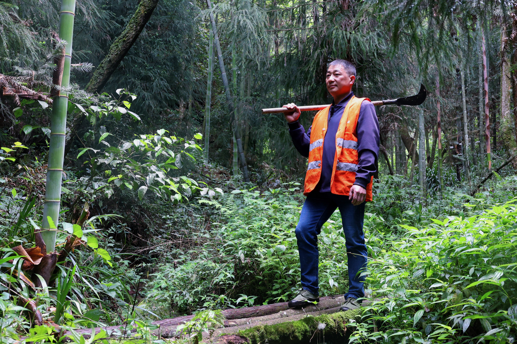 黄荆老林是北纬28°线上保存完好的亚热带原始常绿阔叶林区,总面积433平方公里。作为当地的一名生态护林员,48岁的罗茂开主要负责黄荆老林长滩片区的护林工作。查看野外用火和盗猎情况、进行防灭火宣传……为了守住这片绿色,他每天徒步巡山,一走就是大半天。