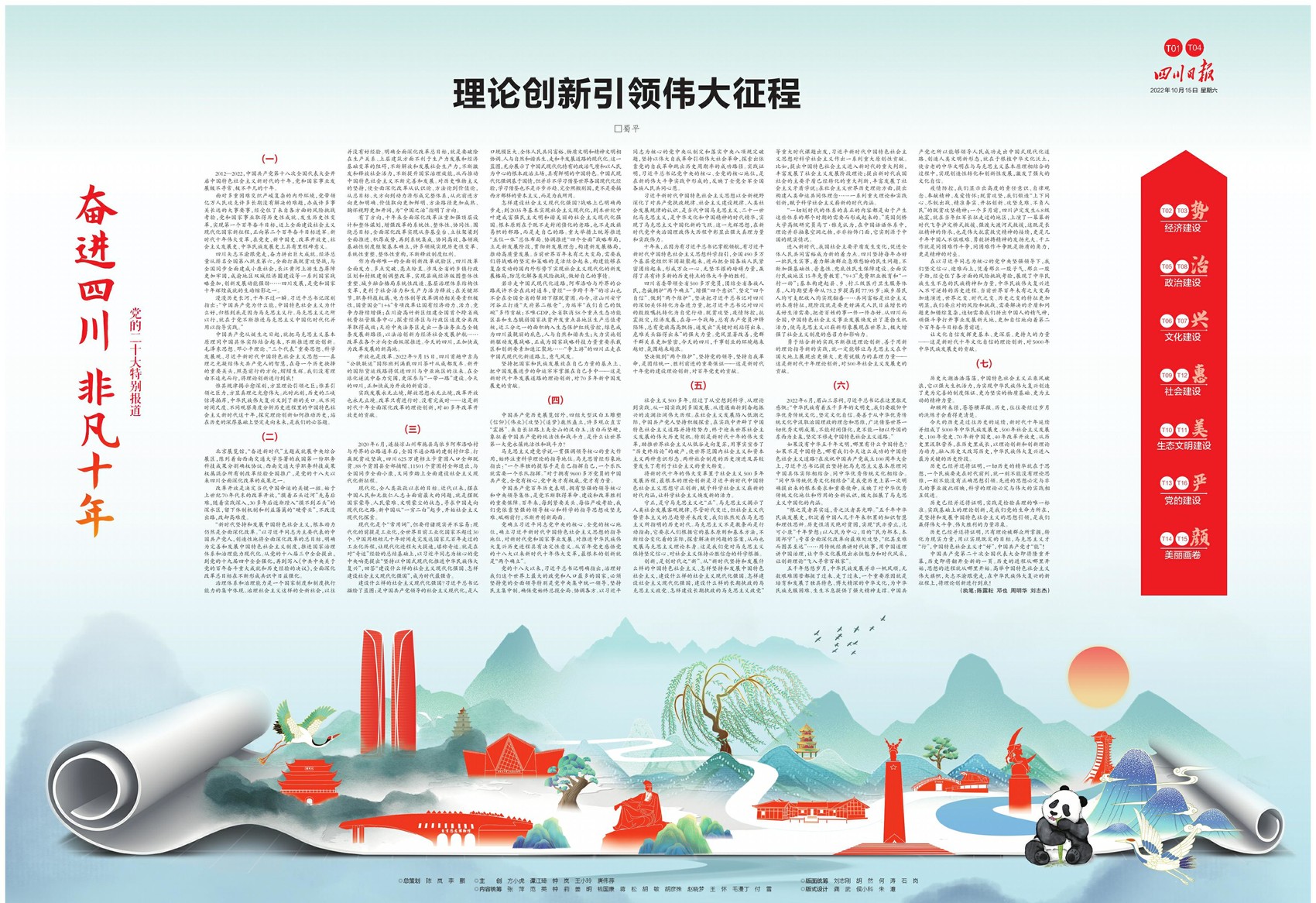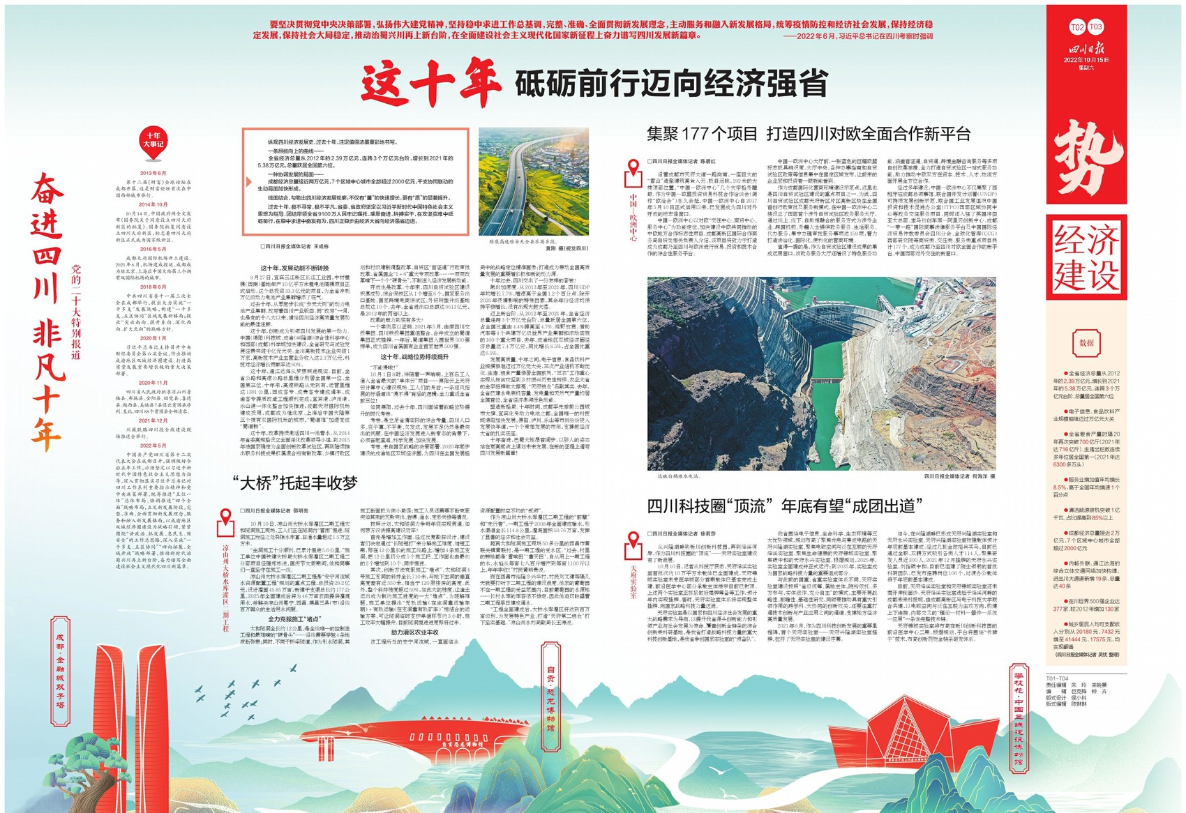 (2022年10月15日,四川日报推出“奋进四川 非凡十年”16个版特刊,上图为T01/T04版、T02/T03版)
