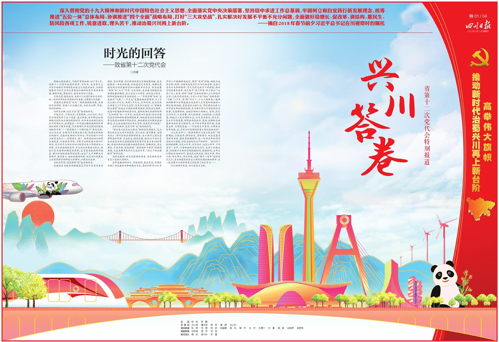 (2022年5月27日,《四川日报》隆重推出148个版珍藏特刊“兴川答卷”,多维度全面呈现四川过去五年发展成就。上图为T01/T04版)