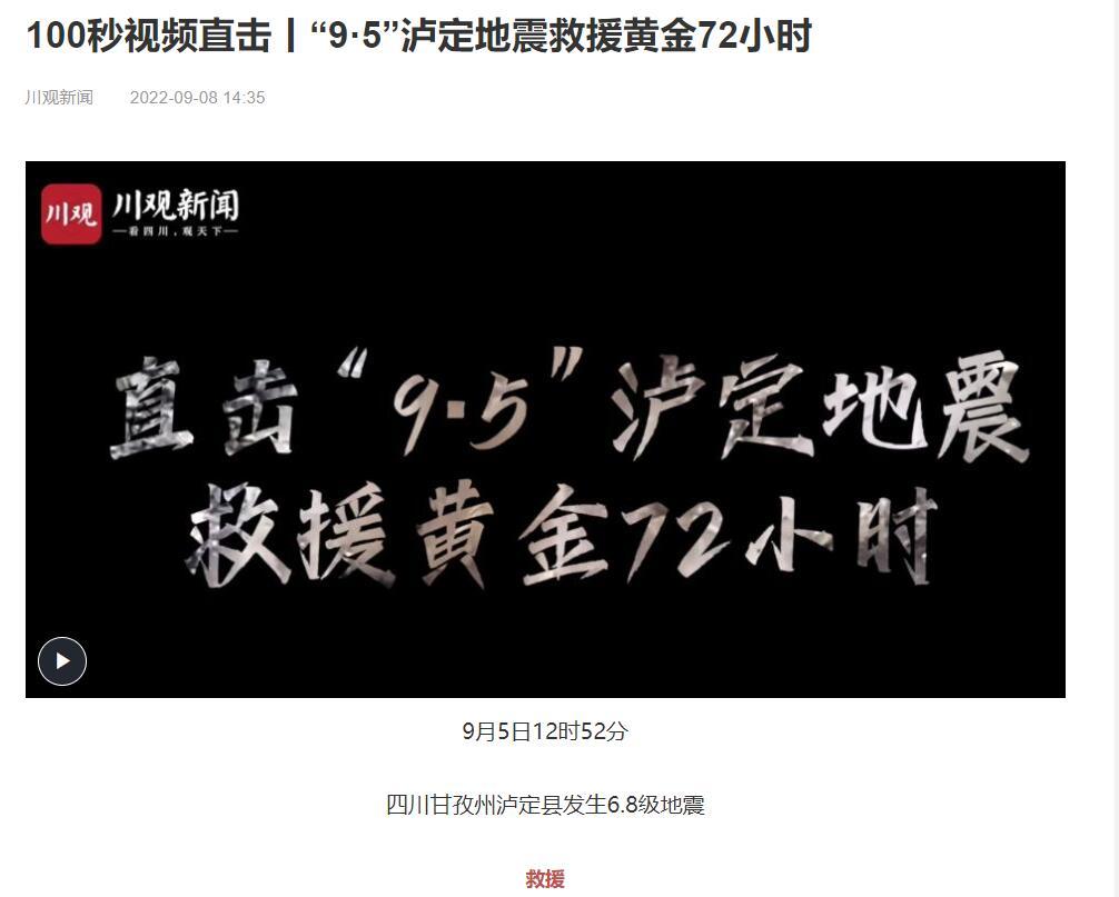 (川观新闻推出100秒视频直击丨“9·5”泸定地震救援黄金72小时》