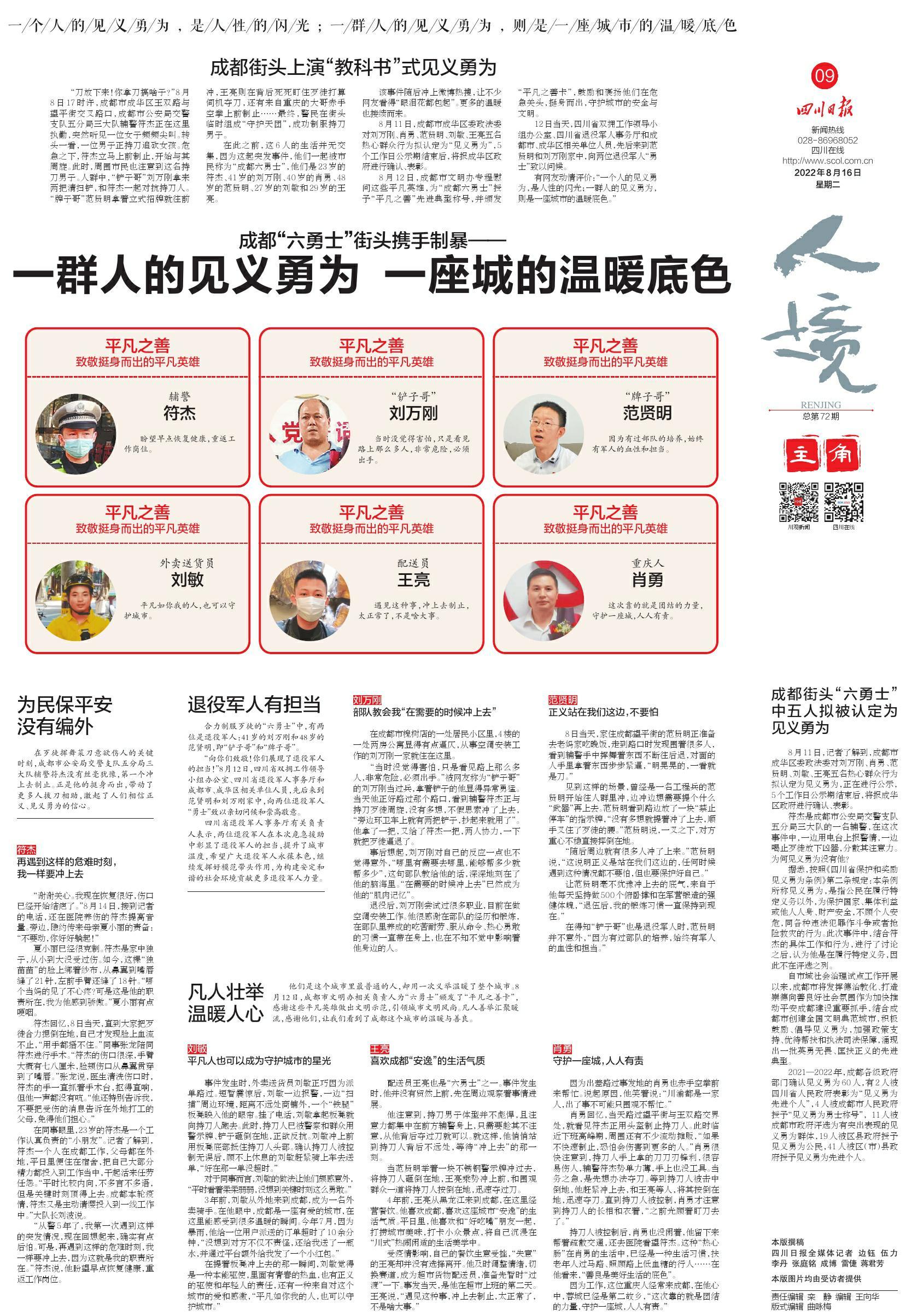 以鲜活人物报道传递社会温情,《C视频|致敬成都好人!面对持刀男子,他们一起冲了上去……》《被“川A英雄”们救出的司机录视频表达感谢,记者连线施救市民回顾救援经过》展示成都警民的正义与血性、勇为和智为。长篇通讯报道《金色山川赤诚的红》、长篇报告文学《行走的光芒:记基层好干部罗从兵》,全面追忆“四川省优秀共产党员”罗从兵的先进事迹,为社会树立典型,弘扬正能量。糖果小妹“奥利奥”捐赠眼角膜的故事,以爱延续生命之光,弘扬向善向上精神力量。