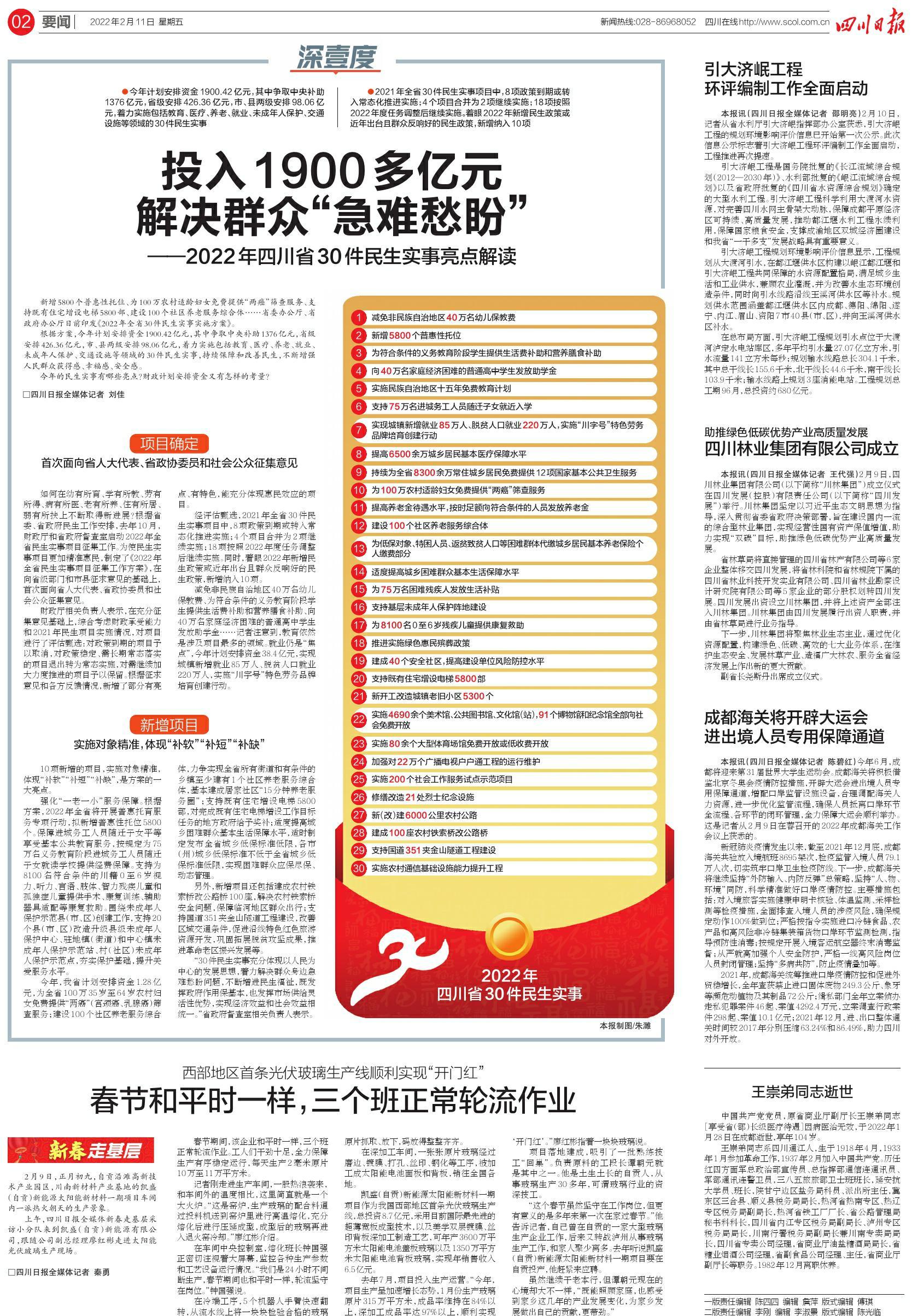 围绕深入贯彻落实省第十二次党代会、省委十二届二次全会精神,组织“踔厉奋发新时代 治蜀兴川再跨越”主题采访活动,推出“兴川答卷”百版特刊,开设“四化同步 城乡融合 五区共兴”新闻专题,开展“乡村振兴蹲点记”“唱好双城记 共建经济圈”等蹲点调研和行走报道,创新“全力以赴拼经济搞建设”等经济报道,充分展示国家大计四川作为。在全国两会、北京冬奥会等报道中突出四川特色元素,在省两会报道、绵阳科博会、成都海科会、四川文旅大会等重要会议活动报道中加强高质量内容生产。升级“全国两会代表委员履职相册”,发布全国两会NFT数字藏品“一起向未来”,征集《我与成渝铁路的故事》,推出互动H5《收藏!省委十二届二次全会学习手账》《来大熊猫国家公园“藏猫儿”》,打造“你点题 我代言”“治蜀兴川再跨越”答题赛等互动产品,以正能量吸引大流量。