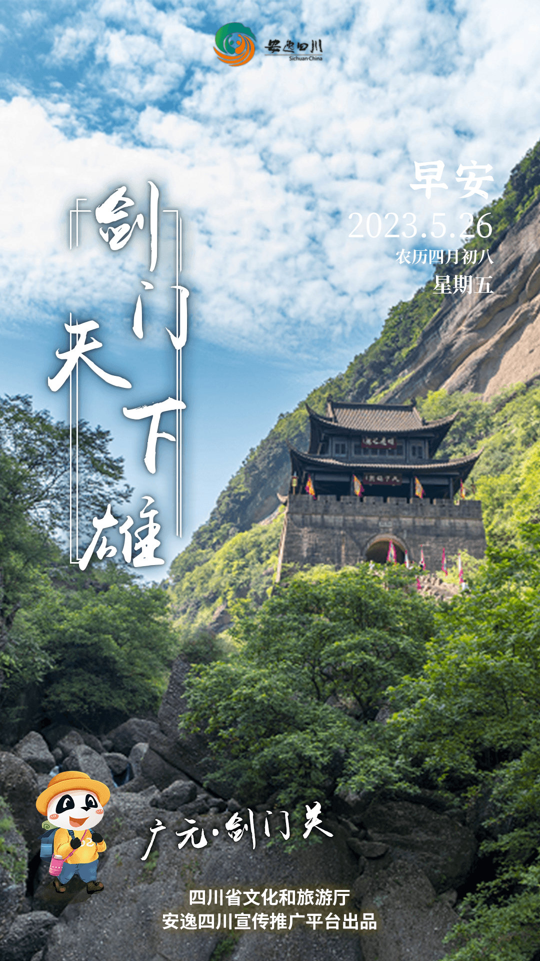 5月26日,星期五。今天安逸四川日历海报带大家走进广元市剑门关景区,感受一夫当关万夫莫开的雄伟气势。