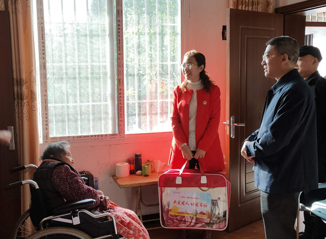 10月23日上午,正值重阳节来临之际,内江高新区在辖区内镇(街)及敬老院开展了重阳节走访慰问活动,向百岁老人、退役军人等带去殷殷关怀之情,并通过他们向全区的老年人致以节日的问候和祝福。