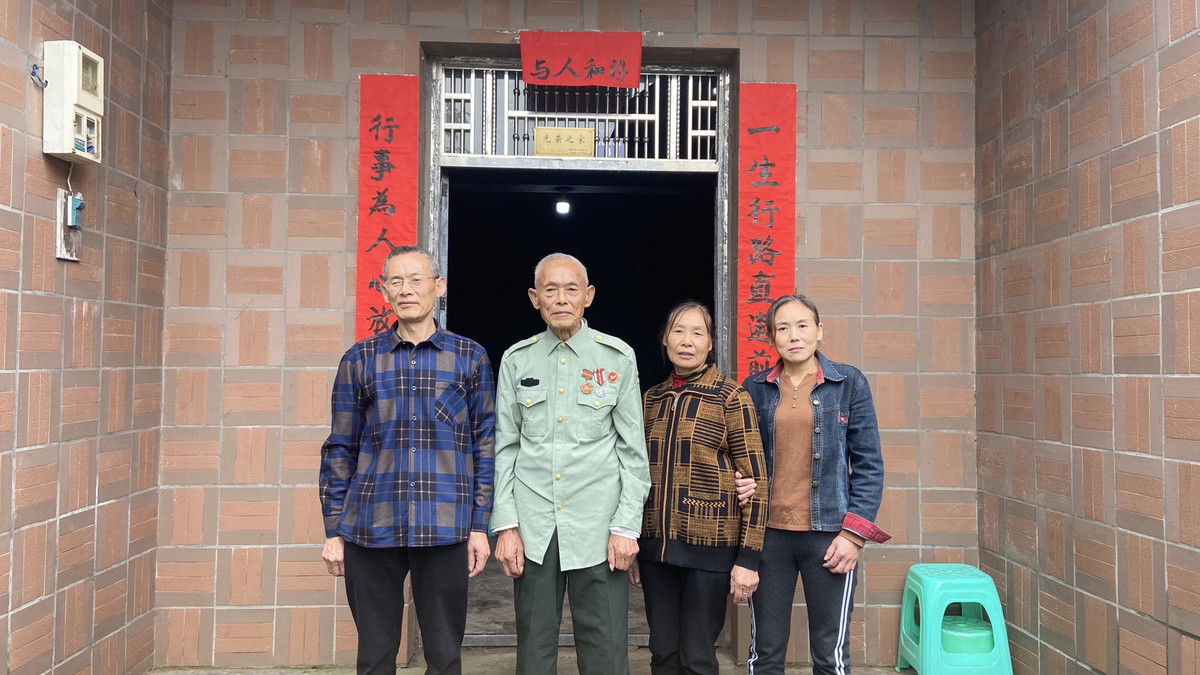 陈思龄老人1956年退伍返回家乡,目前住在龙马潭区胡市镇黄桷村,两层楼高的屋子,客厅里摆放着一张长桌、一个沙发、一个冰箱、一个电视机柜、一台电视机。在屋子对面有一片农田,有时陈思龄会到田里翻捣土地、干点农活。