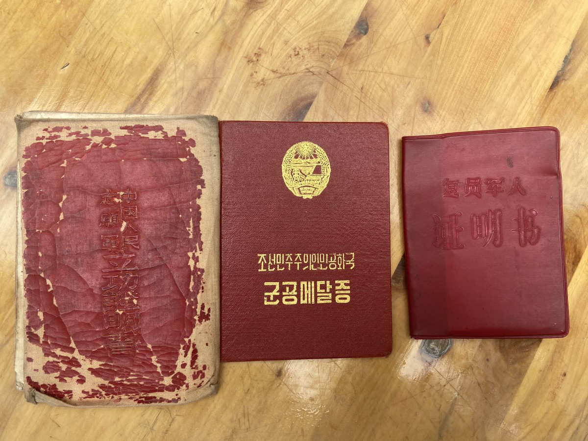老人的子女从屋里拿出了三个红本子,一本是《复员军人证明书》,一本是《中国人民志愿军理工证明书》,另一本印上的是朝鲜语。此外,还拿来了一枚“抗美援朝纪念章”、一枚“三等功”军功章、两张通令“嘉奖状”。看着眼前这些荣誉,老人想起了在朝鲜战场上的峥嵘岁月。