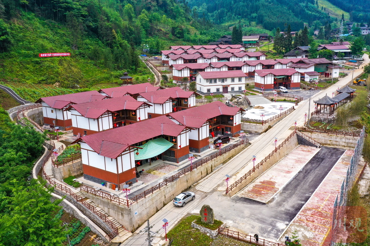 5月26日,走进群山环绕的雅安芦山县太平镇木坪子避险搬迁安置点,20栋极具特色的民居赫然耸立,白墙红瓦掩映在青山绿水间,构成一幅特有的美丽乡村画卷。