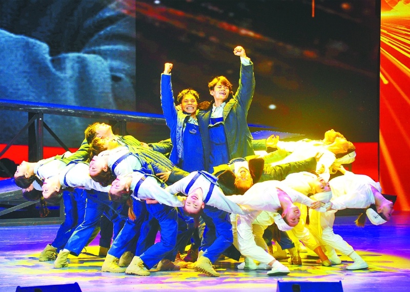 《奋起》篇章中,《咱们工人有力量》《我为祖国献石油》《我们走在大路上》等一首首经典老歌,展现了中华人民共和国成立后,劳动者挥洒汗水、燃烧激情,不惧困难、拼搏向前的感人情景。