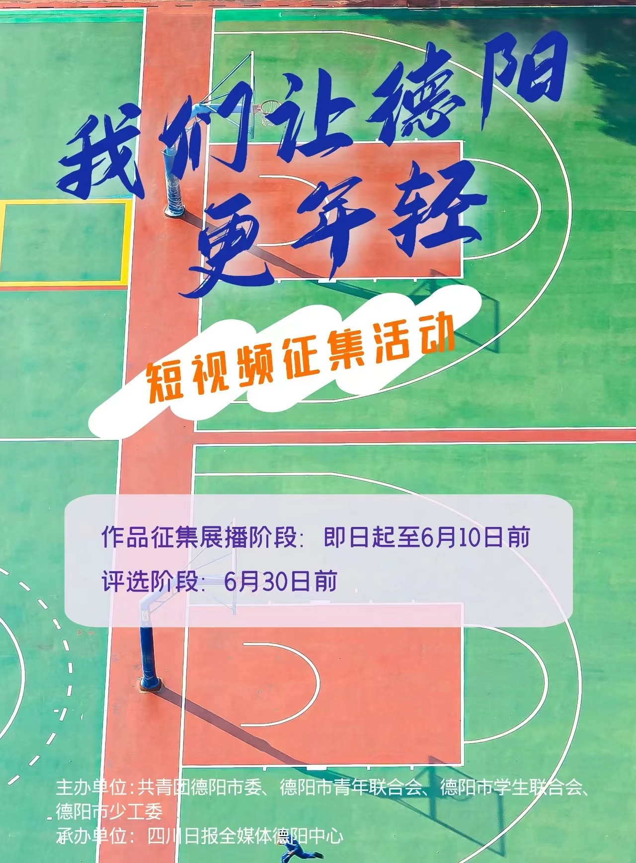 近日,共青团德阳市委、德阳市青年联合会、德阳市学生联合会、德阳市少工委共同发起“我们让德阳更年轻”短视频征集活动。活动面向德阳广大青少年发起,以“我们让德阳更年轻”为主题,通过公益短视频的形式,让德阳青少年用青春的灵感记录身边的变化,用青春的视角看见未来的德阳,强化青少年对城市的归属感,城市对青少年的陪伴感。