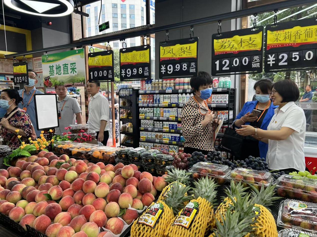 调研组在郫都区唐昌镇永安村供销合作社听取工作人员介绍。