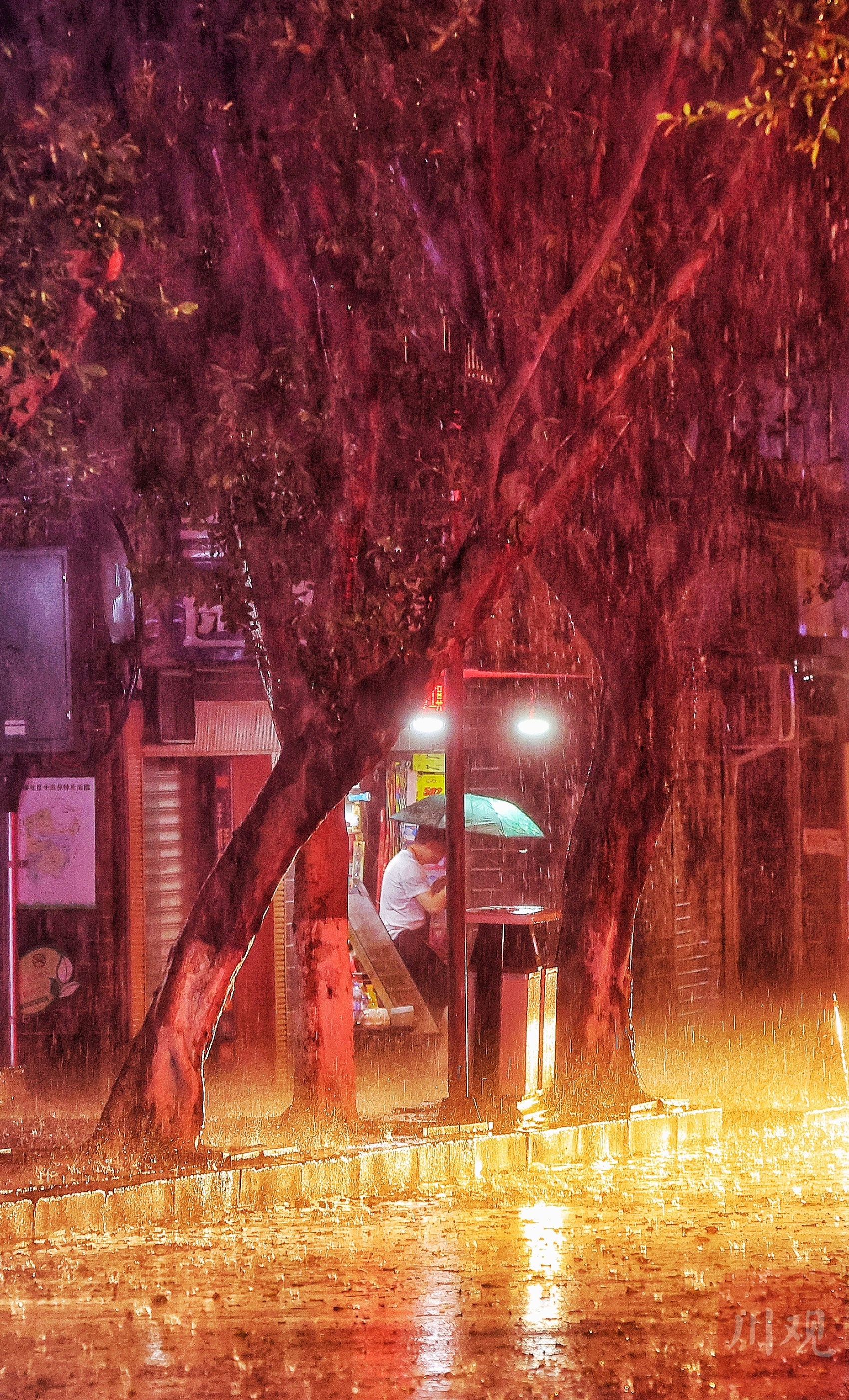 22时许,闷热的天气达到临界点,随着大渡河上游一道闪电划过天幕,空气开始被雨点刺透。霎时,暴雨普降,低空飞舞的草蛉和蜻蜓被猝不及防的雨点打落。